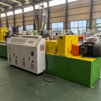 Внутри экструдера материал подвергается «высокотемпературному путешествию». Постепенно нагреваясь внешними нагревательными лентами и огромным теплом трения, генерируемым вращающимися винтами, материал плавится, превращаясь в вязкий пластифицированный расплав ПВХ. Винты действуют как гигантская рука, одновременно вращая и толкая расплав вперед.
