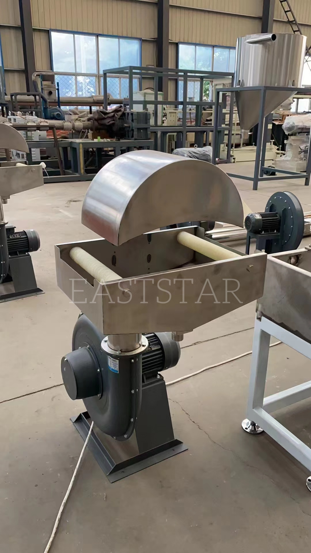 The параллельный двухшнековый грануляторвключает дозирующий питатель с двойной спиралью мощностью 2,2 кВт и передаточным числом 17:1, обеспечивающий равномерную подачу материала. В качестве режущей части система гранулирования пластика использует шаблон горячей резки с 72 отверстиями диаметром 2,8 мм, дополненный четырьмя режущими лезвиями в узле рапиры. Два вентилятора высокого давления (5,5 кВт и 4 кВт) эффективно транспортируют пеллеты по трубам из нержавеющей стали в системы разделения и сбора.