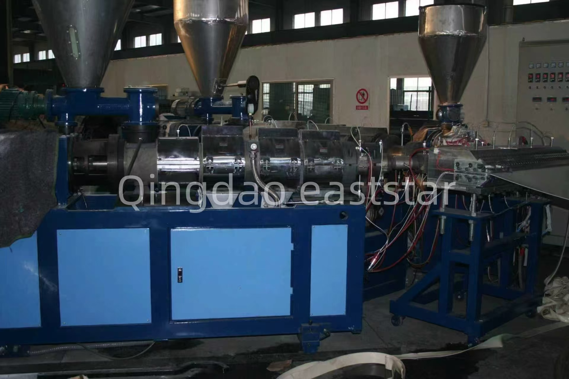 Основное оборудованиеЛиния по производству гофрированного листа PC+ASA при совместной экструзиивключает два одношнековых экструдера SJ-120 и SJ-40, используемых для экструзии слоя ПК и слоя ASA соответственно.