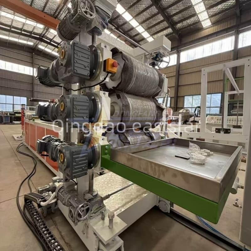 Основной экструдер этогоОборудование для экструзии листов ТПУоснащен винтом, разработанным специально для ТПУ, с более низкой степенью сжатия и более глубокой спиральной канавкой, что минимизирует тепло сдвига и предотвращает деградацию материала. В сочетании с многозонным цилиндром с точным контролем температуры (±1°C) он обеспечивает равномерное и бережное плавление сырья ТПУ. Хотя ТПУ имеет меньшую гигроскопичность, чем нейлон, содержащаяся в нем влага все равно может вызывать образование микропузырьков. Наши сушилки с осушением горячим воздухом обеспечивают стабильно низкую точку росы, гарантируя кристально чистые отпечатки. Наши трехвалковые каландры оснащены независимыми блоками контроля температуры (обычно требующими нагрева до 80-110°C), зеркальной полировкой и тонкой полировкой, что обеспечивает высокий глянец, бесперебойную работу и отличную пластичность. Приводные резиновые роликовые тяговые устройства предотвращают растяжение или деформацию листа ТПУ, обеспечивая стабильное качество рулона.