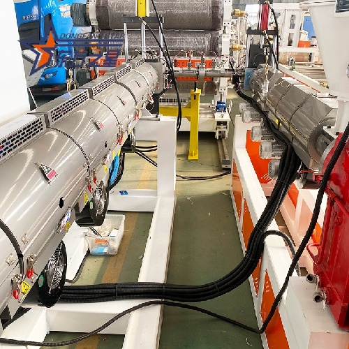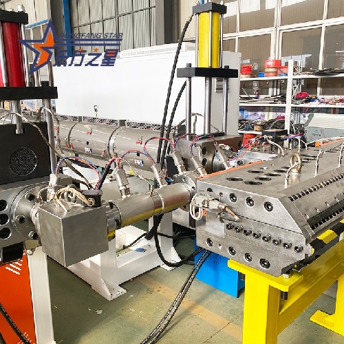 Линия совместной экструзии АБС-пластикапостроен на надежной установке двойной экструзии (мы называем ее моделью 120+60). Главный экструдер представляет собой мощный SJ-120/35 с двигателем мощностью 132 кВт, работающий в паре с экструдером SJ-60/35. Эта комбинация плавно и стабильно обрабатывает структуры слоев A/B/A или A/B.