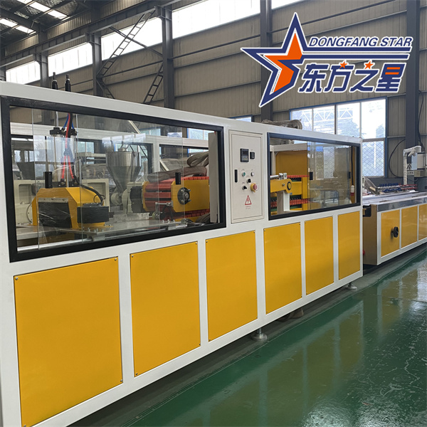 Вакуумная формовка: экструдированные профили поступают на стол вакуумной формовки, где вакуумная адсорбция и принудительное охлаждение быстро затвердевают, обеспечивая размеры и внешний вид.