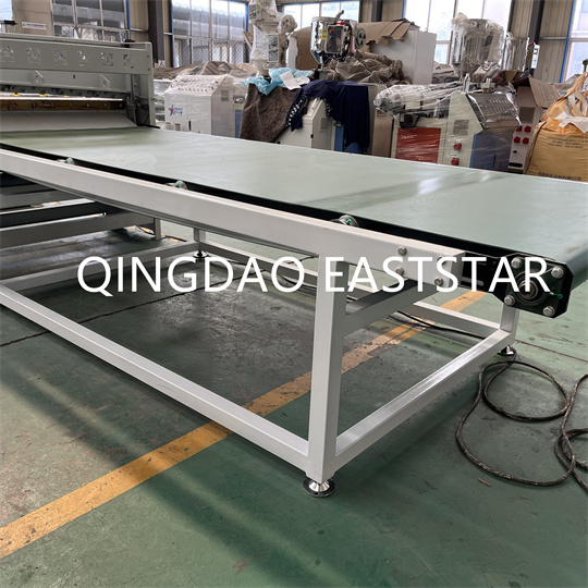 Оборудование для навесных панелей из ПВХ в основном состоит из двухшнекового экструдера, пластинчатой формы, трехвалкового каландра, охлаждающего кронштейна, тягового станка с резиновыми роликами, отрезного станка и конвейерного устройства.